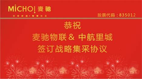 近日,麦驰物联市场部传来喜讯,与中航里城签订“智能化工程”战略集采协议。